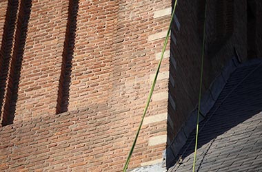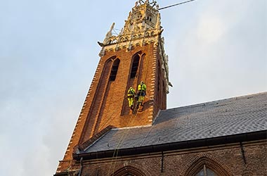 Sky People was asked to remove wire ends that were chemically anchored as a result of scaffolding from the facade of the monumental Bakenesserkerk in Haarlem. Using Rope Access and the expertise of our professionals, we have removed the anchors and left the church tower in its former glory. In total, we removed 96 threaded ends and the church was restored by our team in one week.